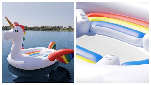 Get ready for the most whimsical “Mom’s Day Out” ever. You can now purchase ginormous pool floats that fit up to six (!) people at a time and they’re shaped like unicorns. That means you’re going to need to grab your best friends, buy some sort of fruity alcoholic beverage, and hit the lake immediately.