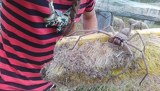 They can also grow to be the size of a mother effin’ dinner plate, with Charlotte being an unusually large specimen. Most Huntsman spiders are about five inches across, and while this big girl’s measurements aren’t available, one glance tells us she’s probably double that.
