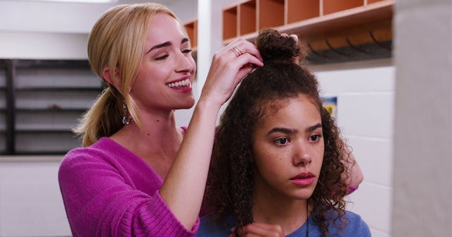 Obviously Ginny’s race plays a huge part of her storyline, too. As a mixed-race girl with features that make it obvious she’s Black, she faces a lot of microaggressions. During the sophomore sleepover, her three friends get their hair put up in ponytails. Ginny knows the white woman doing them will not know how to handle her hair, but she’s desperate to fit in and she allows this woman to brush her curls. Yes, it is as tragic as it sounds. Thankfully Georgia is on hand to fix it. There’s also friction between Ginny and her English teacher. He uses words like “aggressive” and doesn’t give her credit for getting a high score on a quiz because she’s not afraid to challenge his beliefs. All too often, Black women are called aggressive because they stand up for themselves.