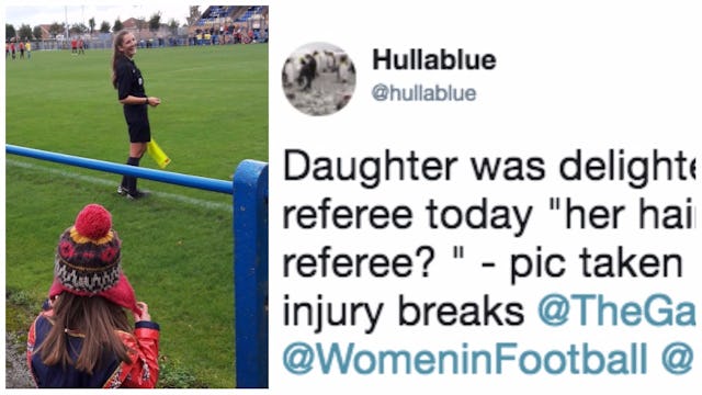Who would have thought a referee at a football game would be the real star of the show? Four-year-old Clara Walker had her entire day made by the appearance of a female ref at a soccer match in England yesterday.