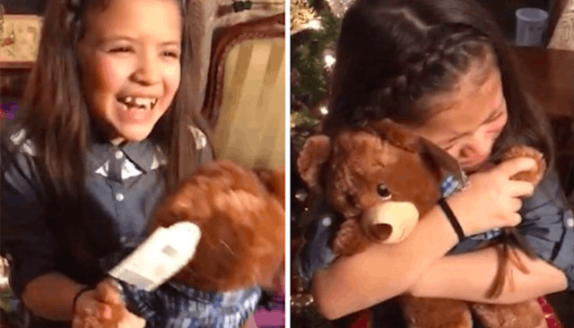 When she did, the little girl heard her grandfather’s voice and burst into tears while clutching the bear. Sarahy opened her bear next and was excited and moved to tears at the sound of her grandpa’s voice, too.