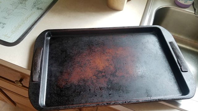 I could show you the new, shiny metal one I have in my cabinet. It has no scratches and looks like it’s never been used. Because it rarely has. It’s the Instagram of pans. If I wanted to show you how my children and I bake cookies at Christmas time, I would show you that pan.