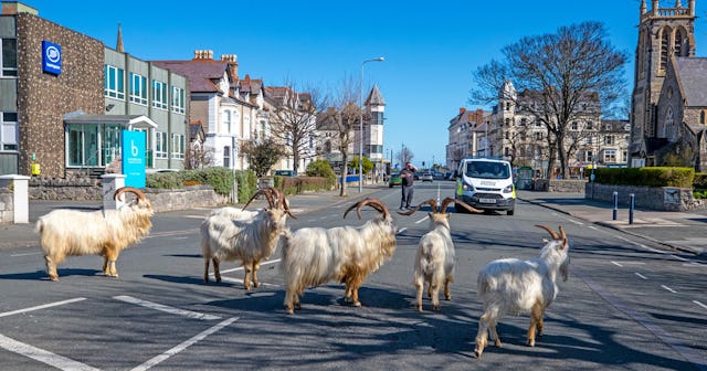 According to The Guardian, this group of goats came down from the mountains and started roaming wild in Llandudno, a small town in North Wales. The goats are running shit and apparently, causing a lot of chaos. They ate hedges, they’ve ruined gardens, and someone even called the police! Yes, really! A squad car came and escorted (herded?) the goats out of the area, but as long as citizens are on lockdown — and the U.K. wants to make the lockdown even more severe — the goats keep coming back.