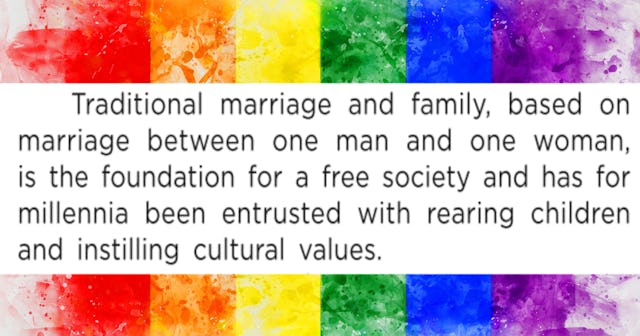 So why am I making these radical claims about the GOP being a collective of homophobic shits? Why would I say its members want to destroy the lives of queer folks? Well, for starters: it’s on their fucking website. I didn’t realize this until recently when a friend pointed it out to me.