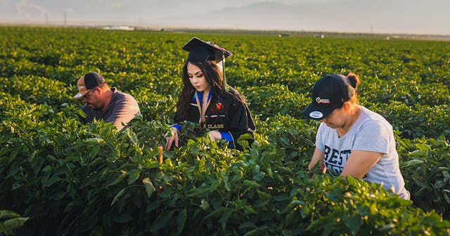 When it came time for new University of California, San Diego graduate Jennifer Rocha to take pictures in her cap and gown, the daughter of two migrant workers knew exactly where she wanted to go: the farm fields near Coachella, California where her entire family has put in years of grueling labor.