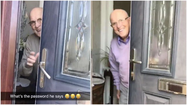 Jen Barclay, a woman who lives in Scotland, starting dropping by her granddad’s house and filming his reaction every time he opened the door and saw her. The result is a compilation video that will warm the chilliest of hearts.