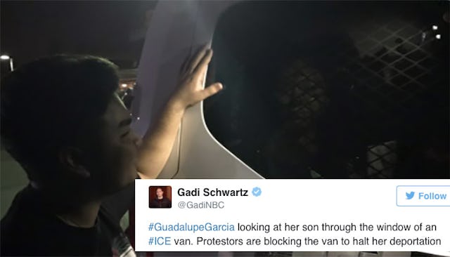 “On Wednesday, immigration agents arrested Ms. Rayos, 35, and began procedures to send her back to Mexico, a country she has not seen since she left it 21 years ago,” the New York Times reports. After they arrested her and placed her in an ICE van, protestors attempted to block the van, and this heartbreaking image was captured: