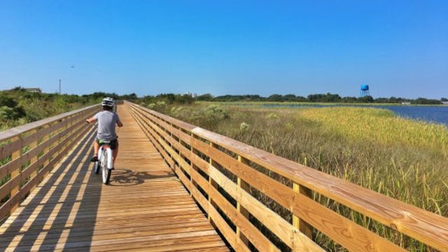 A Beach Bike employee will give you a map of the trails and explain all the points of interest along the path, which include a nature center, butterfly garden, alligator marsh, ice cream and Kona ice stands, and a whole lot more. A restaurant will be opening inside the park in 2018, which would make a nice rest stop during a day of riding.