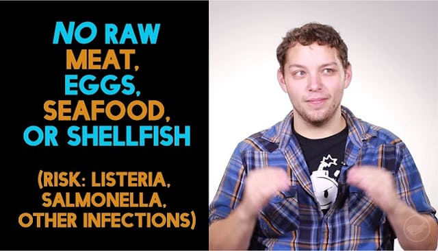 So the video above was a fun little experiment, but it’s nothing compared to the rules pregnant women have to follow, and for 18 times as long as those frat guys did. I’d say the mothers of our children are getting a raw deal, but they can’t even have that.