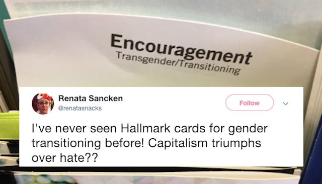 Which is why acceptance like this is so important. Acceptance comes in a variety of forms, and little showings of support — like sending a Hallmark card — can provide affirmation and let members of the trans community know they’re loved and celebrated.
