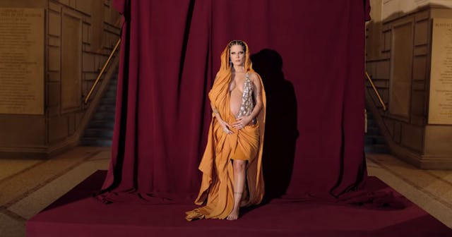 “This album is a concept album about the joys and horrors of pregnancy and childbirth,” she wrote in an Instagram post revealing the album’s cover image. “It was very important to me that the cover art conveyed the sentiment of my journey over the past few months. The dichotomy of the Madonna and the Whore. The idea that me as a sexual being and my body as a vessel and gift to my child are two concepts that can co-exist peacefully and powerfully. My body has belonged to the world in many different ways the past few years, and this image is my means of reclaiming my autonomy and establishing my pride and strength as a life force for my human being.”