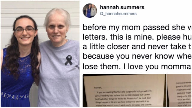 Before she passed away after a lengthy battle with cancer, one girl’s mother wrote her daughter a letter full of advice and motherly wisdom. Hannah Summers’ mom, Peggy, succumbed to cancer earlier this week, but in her grief she decided to share her mom’s final words to her.