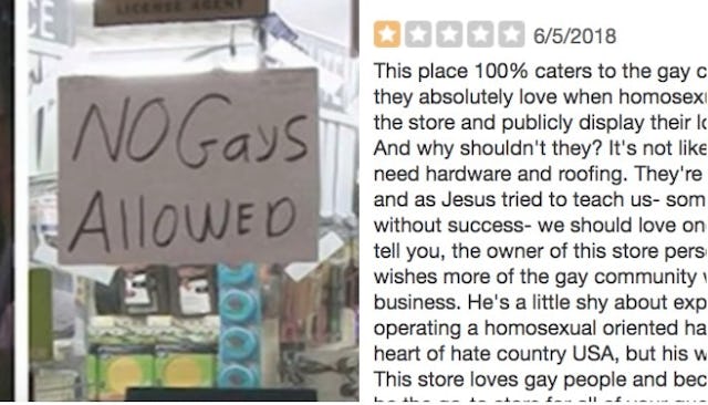 Store Owner With 'No Gays Allowed' Sign Is Being Mercilessly Trolled On Yelp