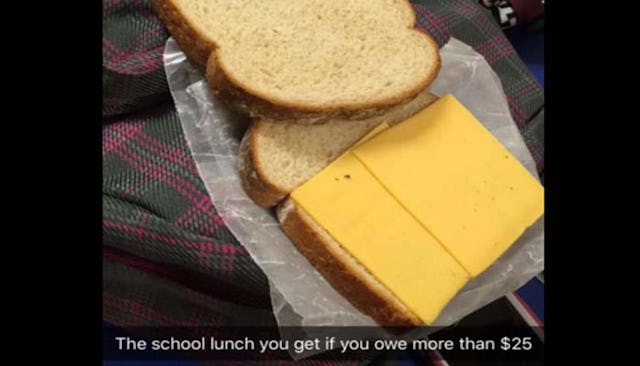 Two slices of cheese slapped on two pieces of plain bread. Feitl claims the students in line who had a lunch debt of $25 or more had their trays taken from them in front of the other students and were handed their choice of a cheese sandwich or a peanut butter and jelly sandwich. “When we got up to the line to pay and put our numbers in, the girl that was in front of us, they were like, ‘You owe $25.60, I have to take the tray from you’,” Feitl told WTHR. “I think the worst part was that they did it when you were paying, in front of everybody else. So if you didn’t have the money that you needed in your account, everyone got to see that.”