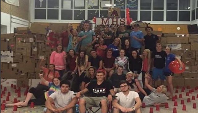 Earlier this week, some students from McDowell High School in Marion, North Carolina built a wall made of boxes and blocked access to a common area on campus. The students were allowed into the school to pull off the ‘prank‘ as a teacher supervised them.