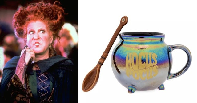 That means we could probably use some appropriately on-theme merch to enjoy this timeless classic for yet another year, and boy have we got a good one. Disney is selling a Hocus Pocus mug with a broomstick spoon and literally, what better to drink our autumn beverages from?