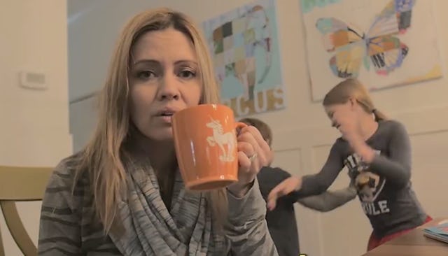 From there, Kim sips coffee and looks frazzled while her kids fight, stare off into space, and take forever to get dressed. They can’t find their stuff, they don’t want to wear pants — all the usual complaints. Penn perfectly sums up the quintessential problem with weekday mornings as he sings: