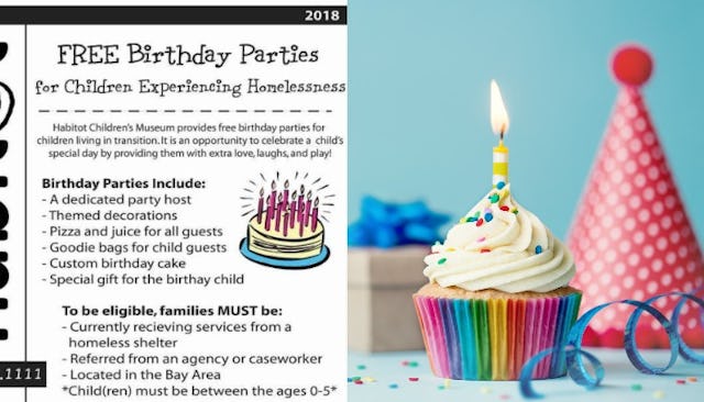 That’s why what Berkeley, California’s Habitot Children’s Museum is doing is truly amazing. Families experiencing homelessness can be referred to the museum to have a free birthday party hosted for their kids, including pizza, favors, decorations, a customized cake and a dedicated party host.