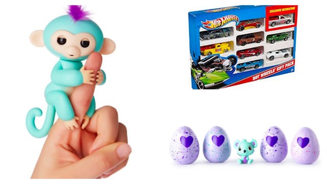 Kids are going crazy for these colorful little monkeys. They respond to motion, sound, and touch. Their heads turn, their eyes blink, and if you pet them or blow kisses, they respond. You can also hang them upside down from a mobile, baby swing, or car seat and let them entrain your child so you can get dinner going or take a shower. They come in a variety of colors and cost as little as $15.