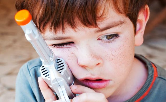 Five years ago, I never would have allowed it. I am virulently anti-gun; I think handguns should be illegal. I swore my kids would never play with guns, especially handguns, because their only purpose is to kill other people. Playing with guns only taught kids that guns are good, and that played right into the hands of the NRA. Gunplay also taught kids that you should point one at someone and pull the trigger, which is how toddlers end up shooting their little brothers. Guns were all-around bad, and I had to keep them away from my kids.