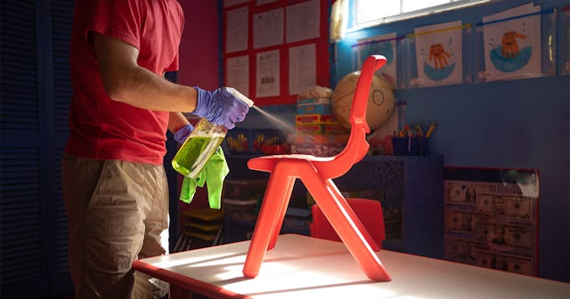No matter how safe and secure your child’s facility is, someone will (more likely than not) become sick — with strep, RSV, COVID-19, or the flu. Daycares and preschools should have an isolation room or area ready, in case a child falls ill while in school. Disinfecting protocols should be followed, and if COVID-19 is confirmed in a child or staff member, CDC guidelines should be followed, i.e. windows and doors should be opened, the facility should be closed for at least 24 hours, and all surfaces should be sanitized, cleaned, or disinfected.