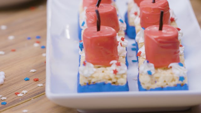 Rice Krispy treats are good, but 4th of July Rice Krispy treats are better. Especially when they’re this cute and easy to make. Dazzle your party guests with this spectacular dessert, great for both kids and adults.