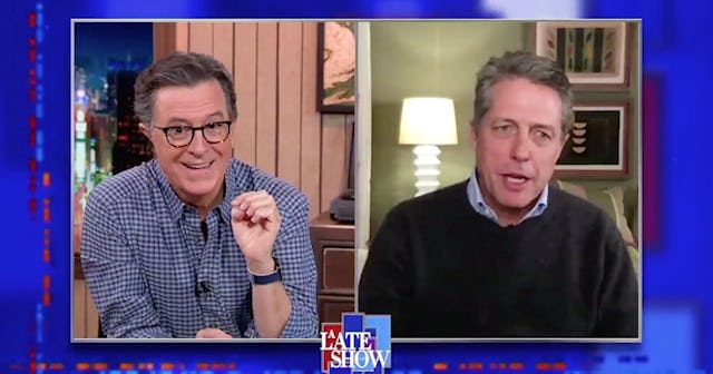 During a virtual appearance on The Late Show, Grant explained to Colbert how he knew he was sick. “It started as just a very strange syndrome where I kept breaking into a terrible sweat. It was like a poncho of sweat, embarrassing really,” Grant remembers. “Then my eyeballs felt about three sizes too big and this feeling as though some enormous man was sitting on my chest, sort of Harvey Weinstein or someone.”