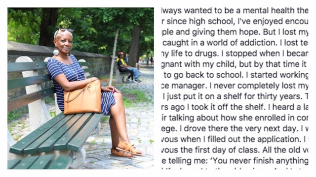The subject of a July 6th HONY post is a middle-aged woman who, after falling on hard times, is closer to realizing her lifelong career goal than ever before. The comments on the post are full of people inspired by the woman’s story and many who could relate to her long journey.