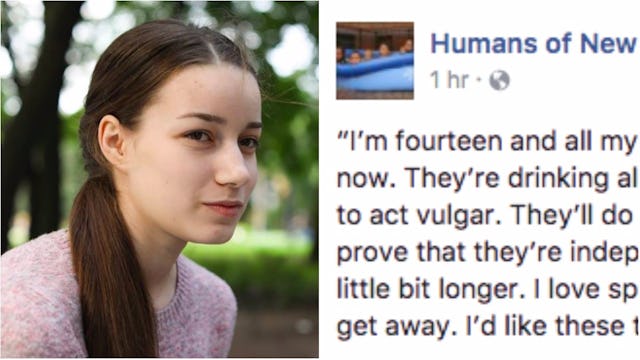 A recent Humans of New York post features a 14-year-old girl’s very honest thoughts on growing up — namely, that she doesn’t want to just yet. To parents, her words are a mixture of reassuring and heartbreaking.