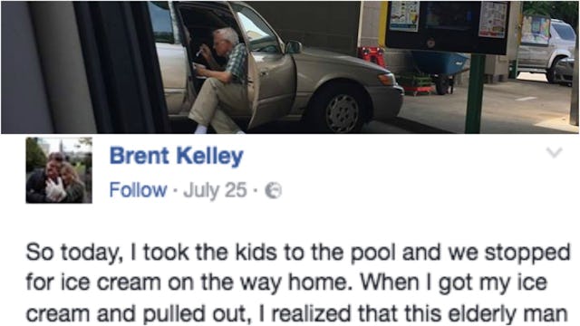 “So today, I took the kids to the pool and we stopped for ice cream on the way home,” Kelly wrote in his post. “When I got my ice cream and pulled out, I realized that this elderly man beside me was sitting out side his car door, spoon feeding his wife ice cream who also looked in her late eighties. He draped a towel over her and slowly fed his bride in the 98 degree temperature. It was a beautiful display of love.”