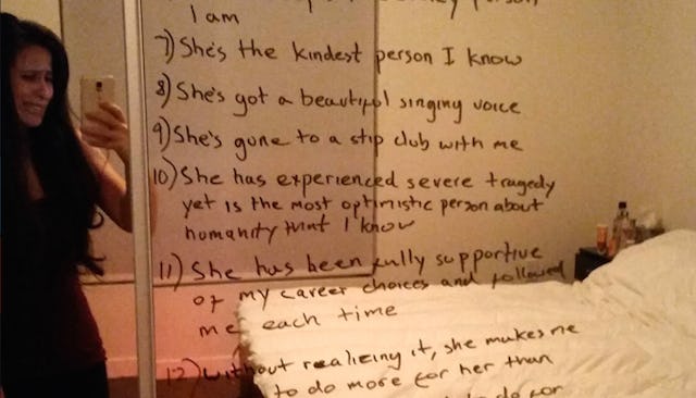 Imgur user MollyWho recently uploaded a photo of her bedroom mirror, which was apparently the location of choice for her husband to pen a sweet (and hopefully not permanent) message reminding her that he loves her. The woman writes that she’s been depressed lately and her husband left her a list of things he loves about her to show her that he “gets the whole ‘for better or worse’ thing,” even when she’s not feeling or acting like herself.