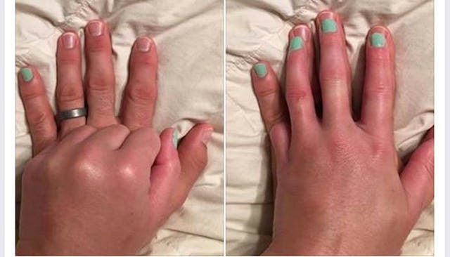 “I simply forget that I lost my pinky, but it is always kind of a bummer when I am reminded.” She wrote. “Matt said ‘I will be your surrogate pinky. You can paint my pinky to match your nails for the rest of our lives’. And so we did….” She went on to say, “I cannot image a sweeter, kinder man. No words adequately describe our love.”