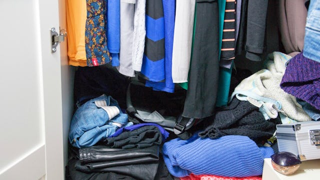 When I was growing up and my mom told me to clean my room, I’d gather all my junk into a big pile, push it bulldozer-style into the closet, and shut the door. Voila! My room wasn’t messy, my mom was happy, and I didn’t get in trouble for being a slob. All right, so maybe I had to heave my body weight against the closet door to get it to open and would lose things for months under the mound, but hey, my bedroom was neat.
