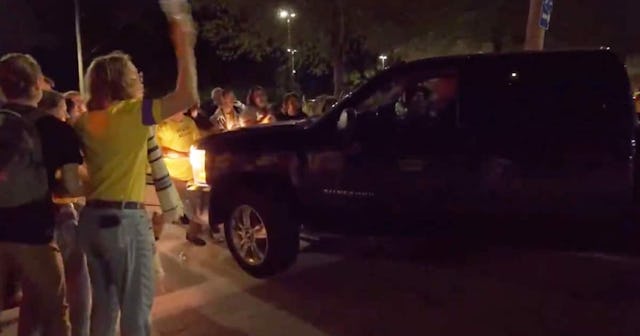 The protestors continued to form a human wall outside the center and that’s when a truck the protestors say was driven by an ICE guard drove straight into their human barricade.