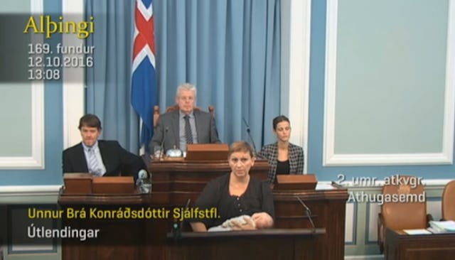 According to The Huffington Post, Unnur Brá Konráðsdóttir, the MP for Iceland’s Independence Party, was sitting in her seat during Parliamentary proceedings. While sitting, she breastfed her six-week-old baby girl. Konráðsdóttir explained to the Icelandic press that she thought she was getting a bit of a break and hadn’t expected to be called back up again.