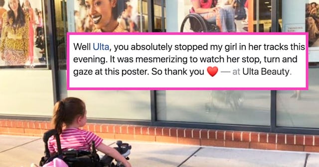 A little girl who uses a wheelchair stopped and stared at an inclusive Ulta poster and the image went viral