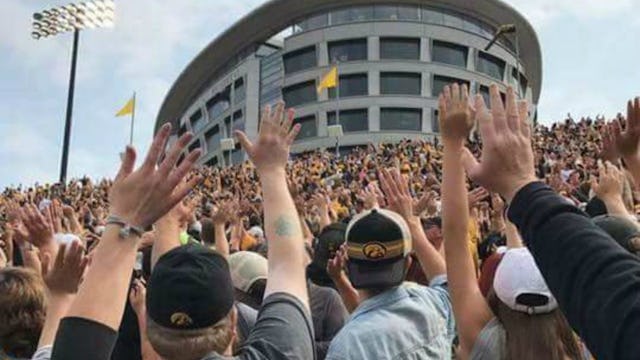 Iowa’s Kinnick Stadium had a sold-out crowd at Saturday’s game, where the new tradition was unveiled at the end of the first quarter. Fans there are calling it “the wave,” a nod to the kind of cheer that’s popular at sporting events. The move went viral pretty quickly, even making ESPN’s Sports Center over the weekend.