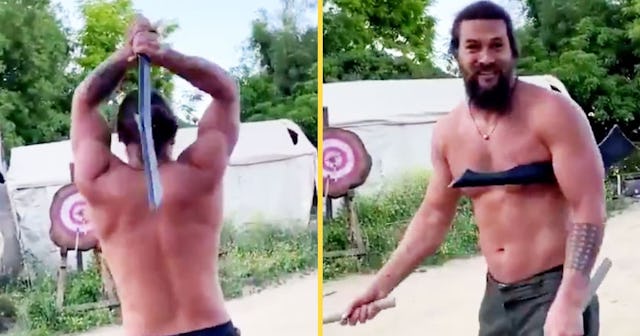 Jason Momoa Is Teaching His Son The No-Look Ax Throw While Quarantined