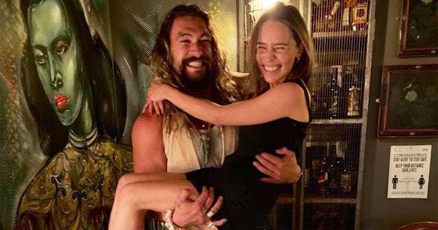 If you’re feeling like you need a cleanser for your timeline, you’re not alone. The news has been a little bit of a dumpster fire lately, and we just want to see something good and pure and happy online, dammit. Thankfully, Jason Momoa and Emilia Clarke are here to deliver that, and just in time. Your heart probably isn’t ready to see these photos of the two Game of Thrones stars reuniting, but I recommend looking at them anyway, because they’re guaranteed to make you smile.