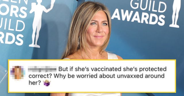 Aniston highlighted a commenter who asked, “But if she’s vaccinated she’s protected correct? Why be worried about unvaxxed around her?” Aniston replied, “Because if you have the variant, you are still able to give it to me.”