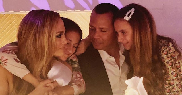 JLo and A-Rod held their engagement party in Los Angeles, where their entire blended family was able to join in the celebration. That includes JLo’s 11-year-old twins Maximilian “Max” David and Emme, and A-Rod’s daughters, 11-year-old Ella and 14-year-old Natasha Alexander. Other family and friends were also their to toast to the new family’s future.
