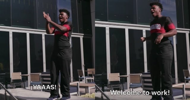 Cheer on Netflix is the best docuseries ever. Full stop. The show follows the cheer team at Navarro College in Corsicana, Texas as they prep for their biggest competition of the year, and while the show highlights the team’s impressive gymnastic stunts, there is one cast member in particular who makes the show so watchable. His name is Jerry and he is the ultimate hype man. Jerry’s enthusiastic “yass’ing” and “you got its!” are so infectious that Netflix recruited him to cheer on their employees as they arrived at work. In other words, Jerry “mat talks” Netflix employees arriving to work.