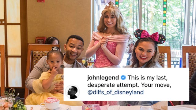 So, he tried again. This time he went with a shot of himself pushing his daughter in a stroller, looking every inch the DILF. “This is my last, desperate attempt. Your move, @dilfs_of_disneyland,” Legend wrote.