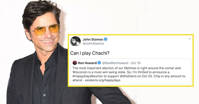 Sunday, Monday, Happy Days. Tuesday, Wednesday, SEE YA CHACHI. Okay, maybe that’s not the official new theme song of the beloved sitcom, but Happy Days really are here again if John Stamos temporarily joins the cast in their upcoming virtual reunion.