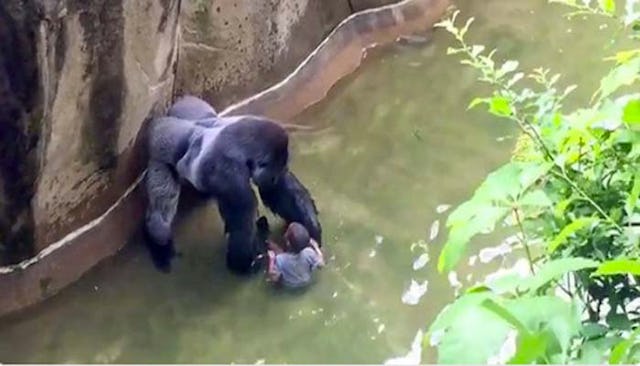 A gorilla at the Cincinnati Zoo was shot over the weekend when a four-year-old somehow made his way under the protective barrier and fell into the moat in the enclosure where the gorillas are kept. Harambe, a 17-year-old gorilla immediately noticed the boy and for 10 minutes dragged the four-year-old around until zoo officials decided the only way to keep the boy safe was to shoot to kill the gorilla.