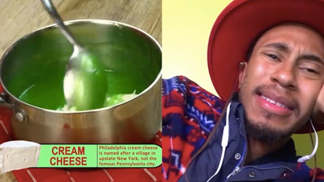 “That looks like some phlegm up in somebody’s throat,” he says while watching a video that jumbles ingredients like lime Jell-O, cream cheese, 7-Up, and MAYONNAISE into a pukey–looking bundt cake. Look, he’s not wrong. I wouldn’t feed that shit to my dog, let alone pass it off as some delicious potluck dish.