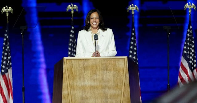 On November 7, 2020, the country celebrated President-elect Joe Biden and Vice President-elect Kamala Harris, and on Saturday night after a day of joy and partying, Harris and Biden took to the stage in Delaware to signal the end of the election. While another VP-elect might be expected to focus their victory speech on their running mate, Harris spent her time onstage honoring the women who made this night possible for her. She honored the women who shattered glass ceilings before her, she honored her mother, and she honored all the Black women whose presence in this election fundamentally changed democracy. It was the most feminist election acceptance speech ever.