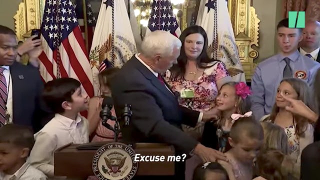 Pence likely didn’t hear the boy and wasn’t purposely ignoring a young child trying to talk to him, but it’s still fun to imagine this kid as basically all of America asking the current administration to give a shit about any number of topics — healthcare, Planned Parenthood funding, education, the environment — take your pick.