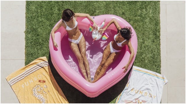 First up, we’ve got this ginormous pink heart that seats two ($149). The bottle of rosé and whimsical seahorse towels are sadly not included, but should probably be mandatory with purchase. If you’re going to buy an oversized, bright pink, inflatable heart, you might as well do it right. Preferably while pleasantly tipsy. How much better is this than a Paw Patrol kiddie pool? So much better.