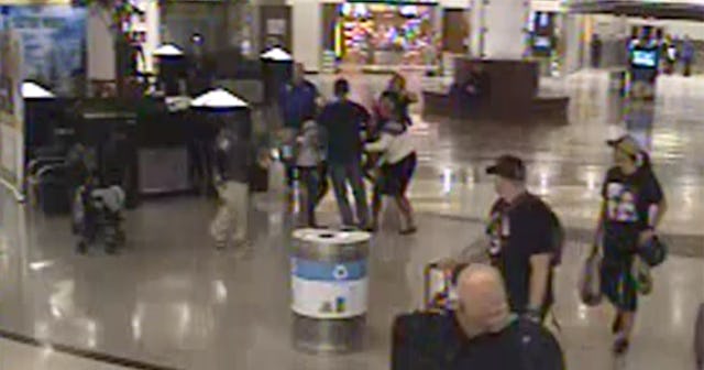 According to officials, 26-year-old Esther Daniels approached the vacation-bound family and attempted to grab their stroller with a child inside. The mother tried to fight her off — because moms are basically superheroes without capes — but at that point, Daniels reached for the second child. Then, the father, a traffic control officer, witnessed the encounter from across the airport and ran to the rescue. Daniels can be witnessed fleeing from the scene. She was quickly apprehended by a female officer and arrested after a visit to a local hospital. She has been charged with kidnapping and obstructing an officer.